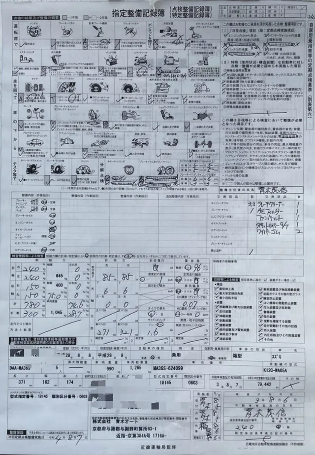 「整備記録簿(保証書付)」と「保安基準適合標章」を発行致します。