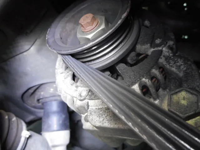 ベルト鳴き(キュルキュル音)等、調整しても直らない場合、ベルト損傷、亀裂の場合は
