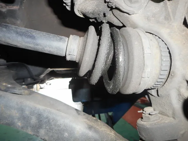 ドライブシャフト・ブーツが破れると、内部のグリースが遠心力で飛び散り無くなり、