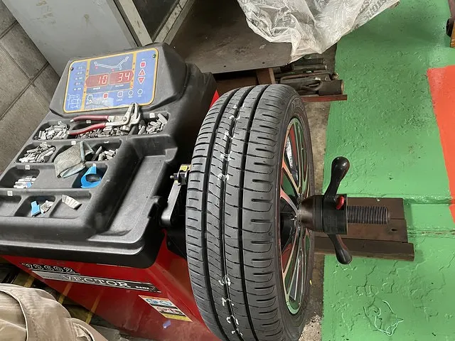 走行中にハンドルが振れない様に、ホイールバランスの調整もさせていただきました。