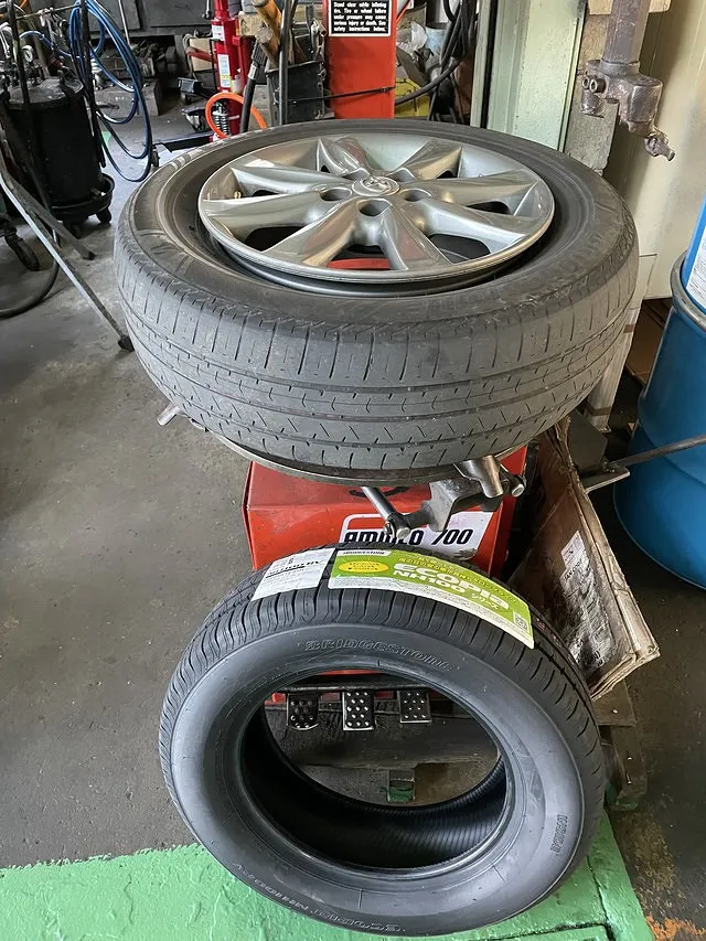 燃料給油のためガソリンスタンドに行ったところ「タイヤ溝がなく危険」とご指摘を受けてタイヤ交換をご依頼いただきました。